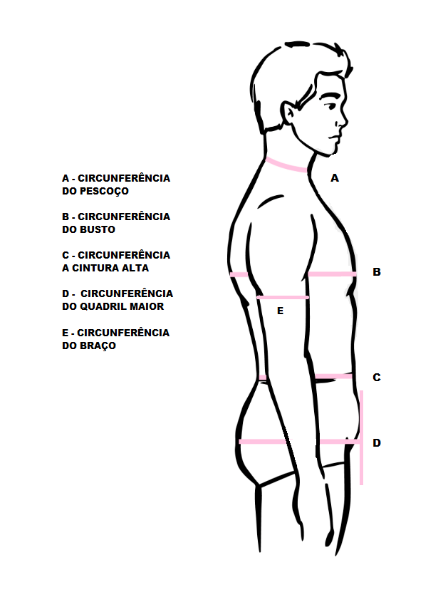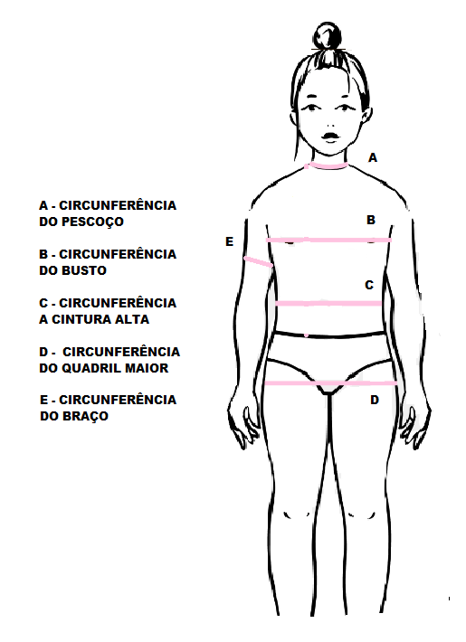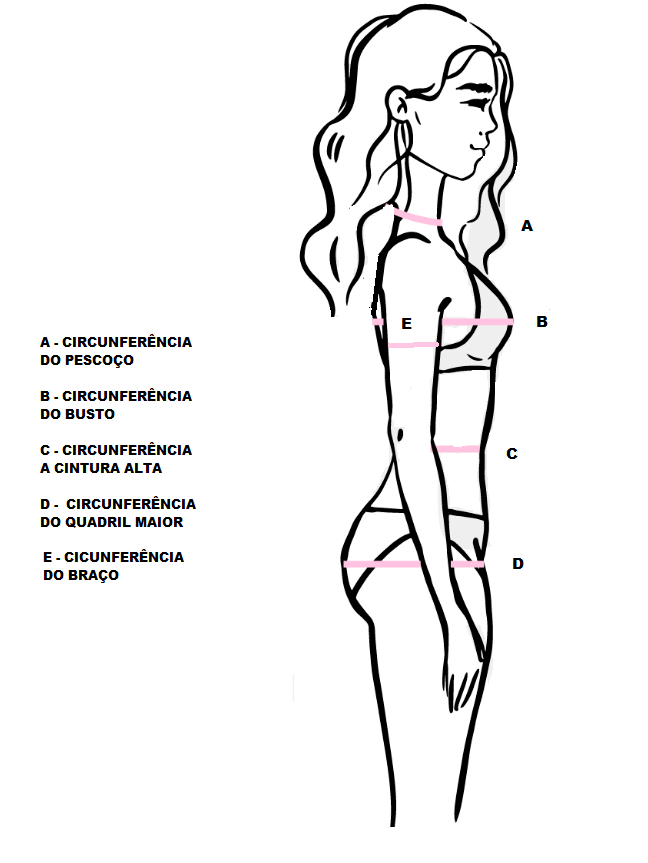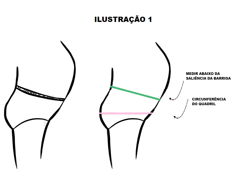 Para mulheres: para escolher o tamanho certo para as peças de baixo, use a medida do quadril mais a saliência da barriga, se sua cintura for maior que o quadril, opte pela medida da cintura.