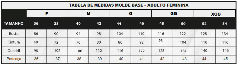 Se a medida do seu busto for +/-2cm diferente, então é recomendado escolher o tamanho maior para roupas justas e o tamanho menor para roupas largas com bastante facilidade. Você encontrará todas as informações de facilidade na descrição geral do molde.